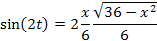 The expression needs to be converted to a function of x. We know that 6 sin (t) = x, but our expression is in terms of 2t! Once again, we use a trig identity. |
