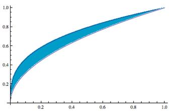 Now let's generalize the area problem from "under the curve" to "between the curves," where the curves can be two or more function graphs. For example, if f(x) and g(x) are two continuous functions defined on the interval [a, b], then the area between them (see figure 5) is defined as,